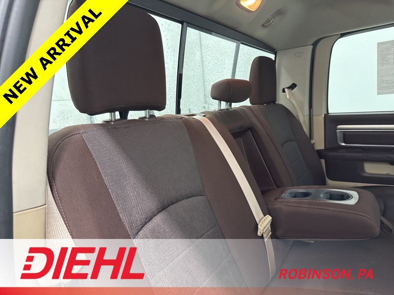 On the exterior, this Ram rides on 20-inch aluminum chrome-clad wheels and features halogen headlights with delay-off, deep-tinted glass, tailgate rear cargo access, a cargo lamp with high-mount stop light, and a front license plate bracket. Utility is further enhanced with the Protection Group, front and rear rubber floor mats, and a single-disc remote CD player with Uconnect 8.4A AM/FM/XM/BT radio.