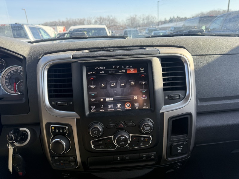 **BLUETOOTH HANDS FREE PHONE**, **BACK-UP CAMERA**, **FACTORY BACKUP CAMERA**, **DUAL ZONE CLIMATE CONTROL**, **8.4" TOUCHSCREEN RADIO**, **20" ALUMINUM CLAD WHEELS**, **FOG LAMPS**, **DUAL EXHAUST**, **5.7L V8 HEMI**, **FACTORY REMOTE START**, **FRONT AND REAR PARKING SONAR**, 115V Auxiliary Power Outlet, 20" x 8" Chrome Clad Aluminum Wheels, 3.21 Rear Axle Ratio, 4-Wheel Disc Brakes, 40/20/40 Split Bench Seat, 6 Month Trial (Registration Required) (3B2), 6 Month Trial (Registration Required) (X9J), 6 Speakers, 8.4" Touchscreen Display, ABS brakes, Active Grille Shutters, Air Conditioning, Air Conditioning ATC w/Dual Zone Control, Alloy wheels, AM/FM radio, Audio Jack Input for Mobile Devices, Auto-Dimming Exterior Mirrors, Auto-Dimming Rear-View Mirror, Big Horn Badge, Big Horn Regional Package, Black Exterior Mirrors, Brake assist, Bright/Bright Billets Grille, Bumpers: chrome, Center Hub, Charge Only Remote USB Port, Class IV Receiver Hitch, Cloth 40/20/40 Bench Seat, Compass, Delay-off headlights, Driver door bin, Dual front impact airbags, Dual front side impact airbags, Dual Rear Exhaust w/Bright Tips, Electric Shift-On-Demand Transfer Case, Electroluminescent Instrument Cluster, Electronic Shift, Electronic Stability Control, Exterior Mirrors Courtesy Lamps, Exterior Mirrors w/Heating Element, Exterior Mirrors w/Supplemental Signals, Fog Lamps, Folding Flat Load Floor Storage, For Details Visit DriveUconnect.com, Front anti-roll bar, Front Armrest w/3 Cupholders, Front Center Armrest w/Storage, Front Center Seat Cushion Storage, Front reading lights, Front wheel independent suspension, Fully automatic headlights, Glove Box Lamp, GPS Antenna Input, Heated door mirrors, Illuminated entry, Integrated Voice Command w/Bluetooth, Leather Wrapped Steering Wheel, LED Bed Lighting, Low tire pressure warning, Manufacturer's Statement of Origin, Media Hub (USB, AUX), Nav-Capable! See Dealer for Details, Occupant sensing airbag, Outside temperature display, Overhead airbag, Overhead console, Overhead Console w/Garage Dr Opener, Panic alarm, ParkSense Front/Rear Park Assist System, ParkView Rear Back-Up Camera, Passenger door bin, Passenger vanity mirror, Power 10-Way Driver Seat, Power door mirrors, Power Heated Fold-Away Mirrors, Power Lumbar Adjust, Power steering, Power windows, Power-Folding Mirrors, Premium Cloth 40/20/40 Bench Seat, Quick Order Package 27S Big Horn, Radio data system, Radio: Uconnect 3 w/5" Display, Radio: Uconnect 3C w/8.4" Display, Rear 60/40 Split Folding Seat, Rear anti-roll bar, Rear Dome w/On/Off Switch Lamp, Rear step bumper, Remote keyless entry, Remote Start System, Remote USB Port, Rotary Shifter-Black, Security Alarm, SiriusXM Satellite Radio, Speed control, Steering Wheel Mounted Audio Controls, Sun Visors w/Illuminated Vanity Mirrors, Tachometer, Tilt steering wheel, Tip Start, Traction control, Trip computer, Uconnect Access, Underhood Lamp, Universal Garage Door Opener, Variably intermittent wipers, Voltmeter. Recent Arrival! Clean CARFAX. Bright Silver Metallic Clearcoat 2017 Ram 1500 Big Horn 4WD 8-Speed Automatic HEMI 5.7L V8 Multi Displacement VVT