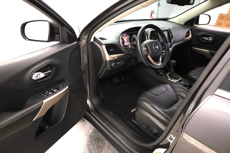 **CARFAX ONE OWNER**, **ALL WHEEL DRIVE**, **BLUETOOTH HANDS FREE PHONE**, **LEATHER**, **BACK-UP CAMERA**, **BLIND SPOT DETECTION**, **REAR PARKING SONAR**, **KEYLESS ENTRY**, **8.4" TOUCHSCREEN RADIO**, **HEATED FRONT SEATS**, **POWER DRIVER SEAT**, **HEATED STEERING WHEEL**, **18" PAINTED ALUMINUM WHEELS**, **AUTO HEADLIGHTS**, **POWER LIFTGATE**, **POWER HEATED OUTSIDE MIRRORS**, **DUAL ZONE CLIMATE CONTROL**, 4-Wheel Disc Brakes, ABS brakes, Anti-whiplash front head restraints, Brake assist, Dual front impact airbags, Dual front side impact airbags, Electronic Stability Control, Emergency communication system: Uconnect Access, Front anti-roll bar, Knee airbag, Low tire pressure warning, Occupant sensing airbag, Overhead airbag, Quick Order Package 21G, Rear anti-roll bar, Rear side impact airbag. Clean CARFAX. Granite Crystal Metallic Clearcoat 2018 Jeep Cherokee Limited 4WD 9-Speed 948TE Automatic 2.4L I4 MultiAir