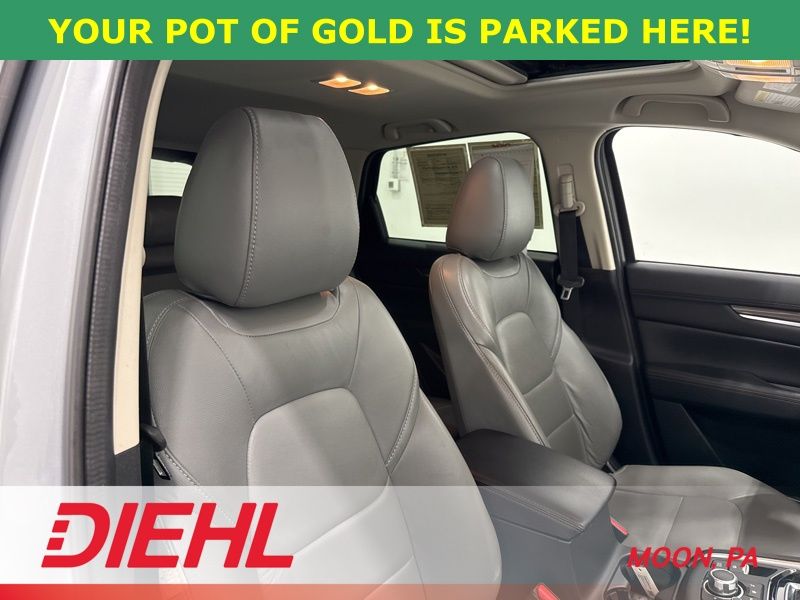 The Grand Touring trim is where this CX 5 really shines. Leather trimmed seating, heated front seats with driver memory, and a power passenger seat create a cabin that feels upscale without trying too hard. The Premium Package adds a head up display, heated rear seats, and a heated steering wheel so even the back seat passengers get VIP treatment. A power sunroof brings in fresh air and sunlight, while the power liftgate makes loading groceries, gear, or weekend adventure supplies refreshingly easy.