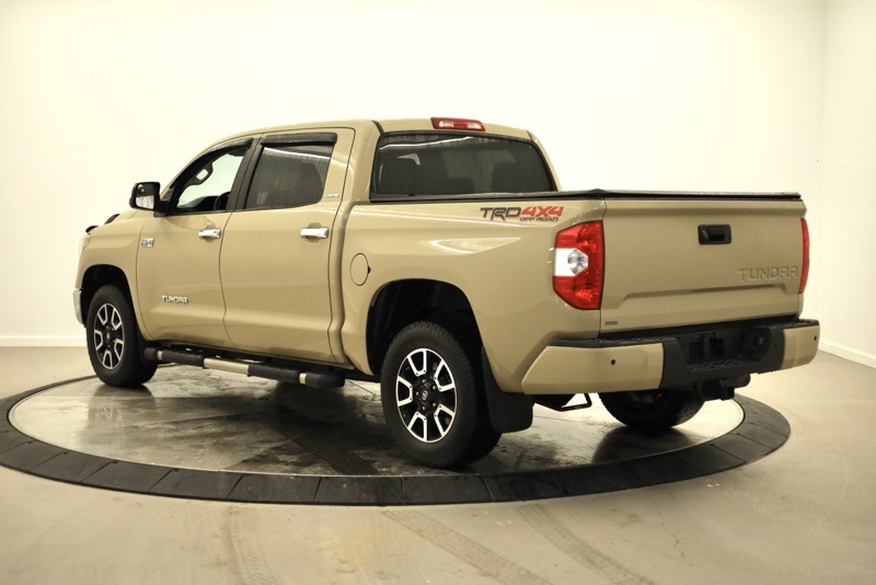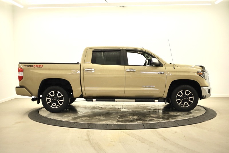**BLUETOOTH HANDS FREE PHONE**, **LEATHER**, **MOONROOF**, **BACK-UP CAMERA**, **CLEAN CARFAX**, **FRONT AND REAR PARKING SONAR**, **PREMIUM JBL SOUND**, **BLINDSPOT DETECTION**, **HEATED FRONT SEATS**, **FACTORY NAVIGATION**, **REMOTE START**, **FACTORY RUNNING BOARDS**, **TRD OFF ROAD**, **18" TRD ALLOY WHEEL**, **7" TOUCHSCREEN RADIO**, **PRE COLLSION SYSTEM**, **LANE KEEP ASSIST**, **ADAPTIVE CRUISE CONTROL**, **AUTO HIGH BEAMS**, 4WD, Black w/Leather Seat Trim or Leather Seat Trim w/TRD Off-Road Package, 4-Wheel Disc Brakes, 4.30 Axle Ratio, 9 Speakers, ABS brakes, Active Cruise Control, Air Conditioning, Alloy wheels, AM/FM radio: SiriusXM, Auto High-beam Headlights, Auto-dimming Rear-View mirror, Automatic temperature control, Bedside TRD Off Road Decal, Blind Spot Monitor w/Rear Cross Traffic Alert, Brake assist, CD player, Color-Keyed Rear Bumper, Compass, Delay-off headlights, Driver door bin, Driver vanity mirror, Dual front impact airbags, Dual front side impact airbags, Electronic Stability Control, Entune App Suite, Exterior Parking Camera Rear, Front & Rear Parking Assist Sonar, Front anti-roll bar, Front Bucket Seats, Front Center Armrest, Front dual zone A/C, Front fog lights, Front reading lights, Front wheel independent suspension, Fully automatic headlights, Garage door transmitter: HomeLink, Glass Breakage Sensors (GBS), Heated door mirrors, Heated Front Bucket Seats, Heated front seats, Illuminated entry, Illuminated Entry System, Knee airbag, Leather Seat Trim (LB), Leather Seat Trim w/TRD Off Road Package, LED Headlights w/Smoked Housings, Limited Premium Package, Low tire pressure warning, Navigation System, Occupant sensing airbag, Outside temperature display, Overhead airbag, Overhead console, Panic alarm, Passenger door bin, Passenger vanity mirror, Power door mirrors, Power driver seat, Power passenger seat, Power steering, Power Tilt & Slide Moonroof w/Sliding Sunshade, Power windows, Power Windows w/Front Auto Up/Down, Radio data system, Radio: Entune Premium Audio AM/FM w/HD Radio & CD, Radio: Entune Premium JBL Audio AM/FM/HD Radio/CD, Rear reading lights, Rear seat center armrest, Rear step bumper, Rear window defroster, Remote keyless entry, Security system, SIRIUSXM Satellite Radio, Speed control, Speed-sensing steering, Split folding rear seat, Steering wheel mounted audio controls, Tachometer, Telescoping steering wheel, Tilt steering wheel, Traction control, Trail-Tuned Bilstein Shock Absorbers, TRD Off Road Floor Mats, TRD Off Road Package, Trip computer, Variably intermittent wipers, Voltmeter, Wheels: 18" x 8J Split 5-Spoke TRD Off Road Alloy. Clean CARFAX. Quicksand 2019 Toyota Tundra Limited CrewMax 4WD 6-Speed Automatic Electronic i-Force 5.7L V8 DOHC 32V LEV