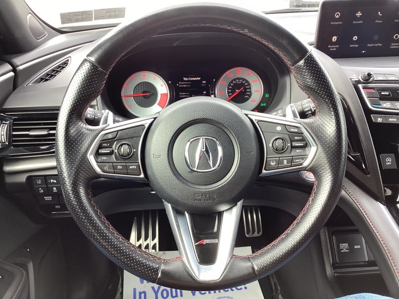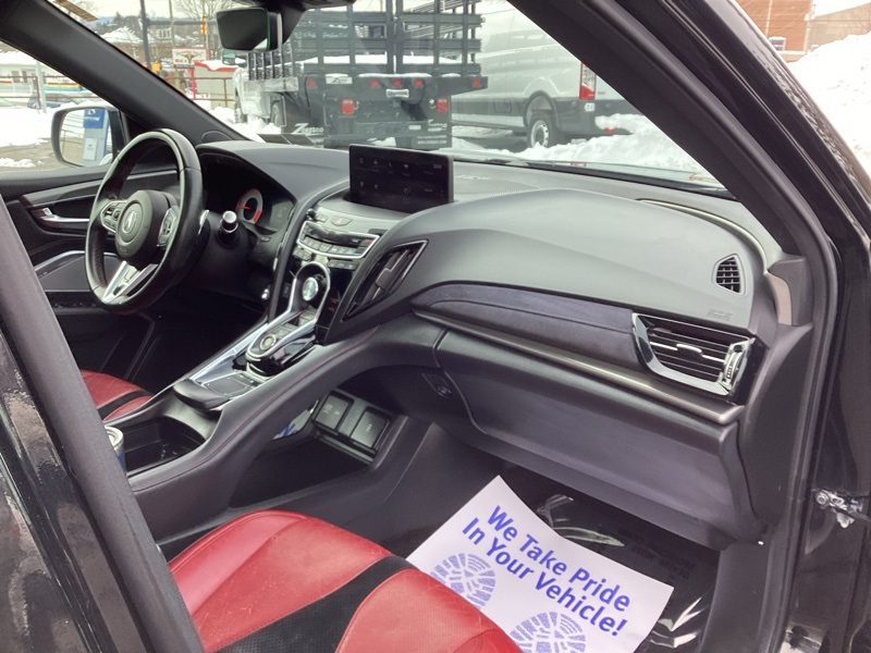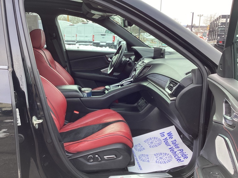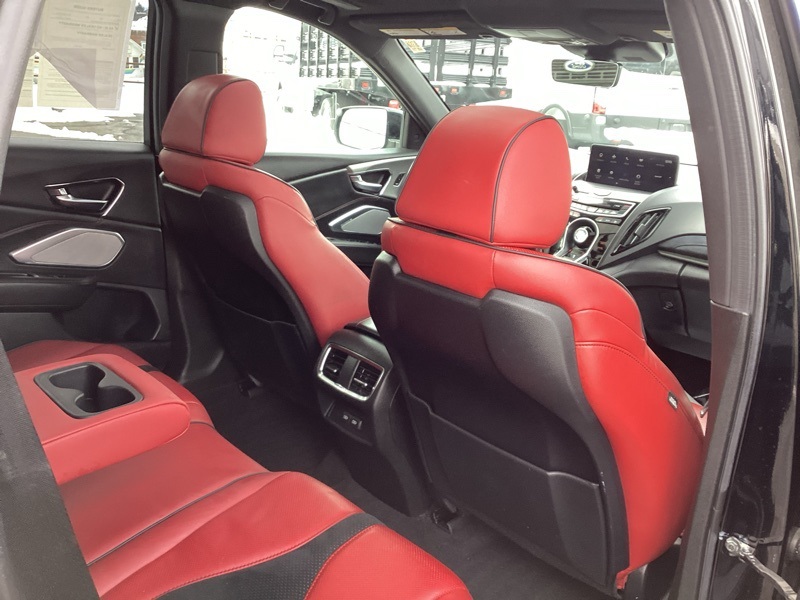 AWD, 16 Speakers, 4-Wheel Disc Brakes, 4.17 Axle Ratio, ABS brakes, Air Conditioning, Alloy wheels, AM/FM radio: SiriusXM, Apple CarPlay, Auto High-beam Headlights, Auto-dimming Rear-View mirror, Automatic temperature control, Brake assist, Bumpers: body-color, Compass, Delay-off headlights, Driver door bin, Driver vanity mirror, Dual front impact airbags, Dual front side impact airbags, Electronic Stability Control, Emergency communication system: AcuraLink, Exterior Parking Camera Rear, Four wheel independent suspension, Front anti-roll bar, Front Bucket Seats, Front Center Armrest, Front dual zone A/C, Front fog lights, Front reading lights, Fully automatic headlights, Garage door transmitter: HomeLink, Heated & Ventilated Front Sport A-Spec Seats, Heated door mirrors, Heated front seats, Illuminated entry, Knee airbag, Lane departure: Lane Keeping Assist System (LKAS) active, Low tire pressure warning, Memory seat, Navigation system: Acura Navigation System with 3D View, Occupant sensing airbag, Outside temperature display, Overhead airbag, Overhead console, Panic alarm, Passenger door bin, Passenger vanity mirror, Perforated Milano Premium Leather-Trimmed Interior, Power door mirrors, Power driver seat, Power Liftgate, Power moonroof, Power passenger seat, Power steering, Power windows, Premium audio system: ELS Studio, Radio data system, Radio: ELS Studio 3D Premium Audio System, Rear anti-roll bar, Rear reading lights, Rear seat center armrest, Rear window defroster, Rear window wiper, Remote keyless entry, Security system, Speed control, Speed-sensing steering, Split folding rear seat, Spoiler, Steering wheel mounted audio controls, Tachometer, Telescoping steering wheel, Tilt steering wheel, Traction control, Trip computer, Turn signal indicator mirrors, Variably intermittent wipers, Ventilated front seats, Wheels: 20" x 8" Shark Gray Split 5-Spoke. Majestic Black Pearl 2020 Acura RDX A-Spec Package SH-AWD AWD 10-Speed Automatic 2.0L 16V DOHC