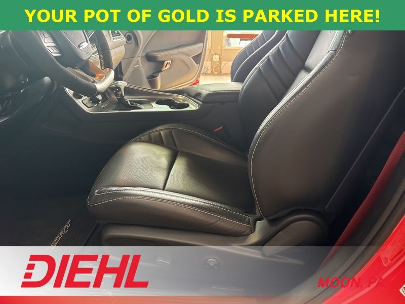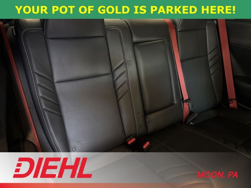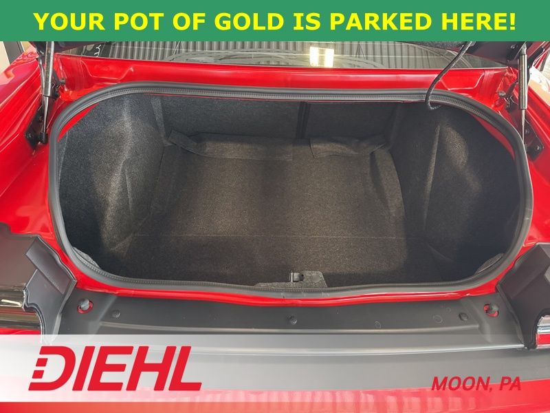 Inside, the cabin mixes classic muscle car attitude with modern comfort and tech. Laguna leather performance seating surrounds you with heated and ventilated front seats, a heated leather steering wheel, and power driver adjustments so every drive feels perfectly dialed in. The large 8.4 inch touchscreen keeps everything connected with Apple CarPlay, Android Auto, navigation, Bluetooth, and a WiFi hotspot, while the Harman Kardon premium sound system with subwoofer makes your favorite playlist sound almost as powerful as the engine itself.