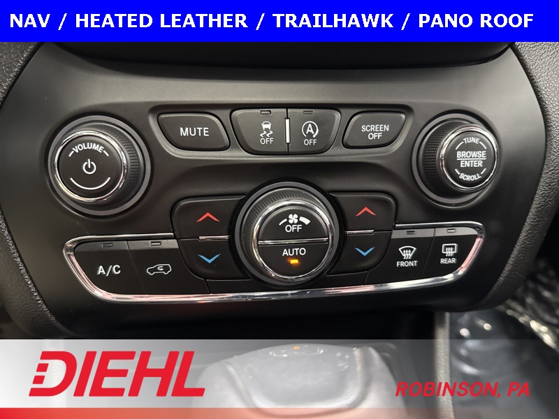 With bold styling, 17-inch black aluminum wheels, and a confident stance, the Cherokee Trailhawk looks ready for anything—and it is. Experience legendary Jeep capability with everyday comfort at Diehl of Robinson. Schedule your test drive today and see why the Trailhawk is the SUV that refuses to compromise.