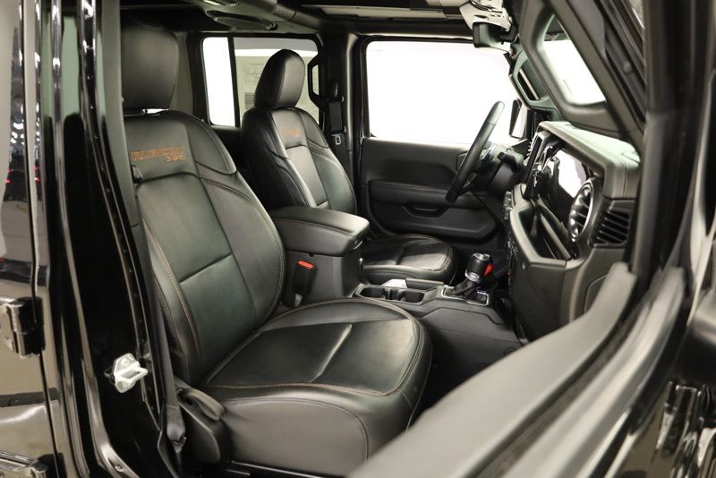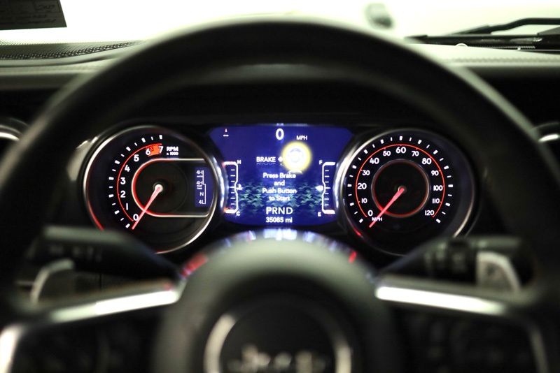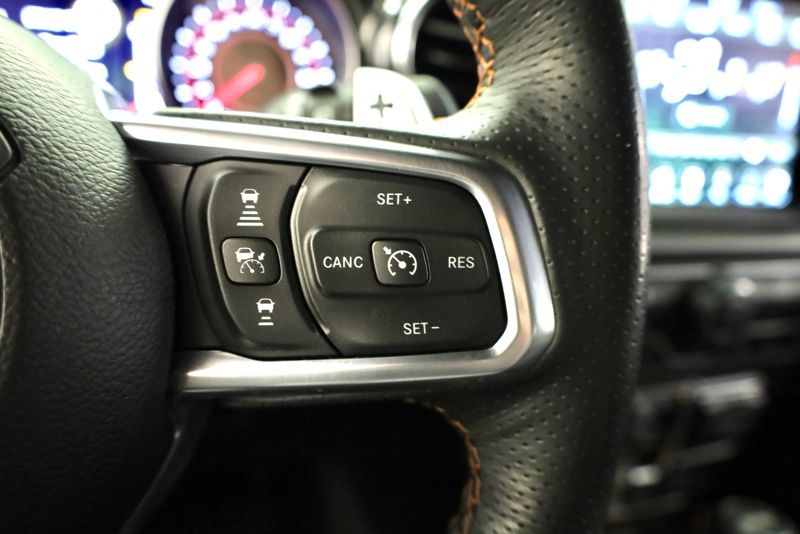 **SKY ONE TOUCH POWER TOP**, **FACTORY REMOTE START**, **CLEAN CARFAX ONE OWNER**, **HEATED STEERING WHEEL**, **APPLE CARPLAY / ANDROID AUTO**, **ALPINE PREMIUM SOUND**, **8.4" TOUCHSCREEN RADIO**, **BLIND SPOT DETECTION**, **HEATED FRONT SEATS**, **17" BEADLOCK WHEELS**, **FACTORY NAVIGATION**, **REAR PARKING SONAR**, 3.73 Rear Axle Ratio, 4-Wheel Disc Brakes, 9 Speakers, ABS brakes, Air Conditioning, Alloy wheels, AM/FM radio: SiriusXM, Apple CarPlay/Android Auto, Auto High-beam Headlights, Auto-dimming Rear-View mirror, Automatic temperature control, Body Color 3-Piece Hard Top, Brake assist, Compass, Delay-off headlights, Driver door bin, Driver vanity mirror, Dual front impact airbags, Dual front side impact airbags, Electronic Stability Control, Emergency communication system: SiriusXM Guardian, Freedom Panel Storage Bag, Front anti-roll bar, Front Bucket Seats, Front Center Armrest w/Storage, Front dual zone A/C, Front fog lights, Front reading lights, Fully automatic headlights, Garage door transmitter, Glass rear window, Glass Window Material, Heated door mirrors, Heated front seats, Heated steering wheel, Illuminated entry, Integrated roll-over protection, Leather Shift Knob, Leather steering wheel, Leather Trimmed Bucket Seats, Low tire pressure warning, MOPAR All-Weather Floor Mats (DISC), Navigation System, No Soft Top, Occupant sensing airbag, Outside temperature display, Panic alarm, ParkView Rear Back-Up Camera, Passenger door bin, Passenger vanity mirror, Power door mirrors, Power steering, Power Top Quarter Window Storage Bag, Power windows, Quick Order Package 27X, Radio data system, Radio: Uconnect 4C Nav w/8.4" Display, Rear anti-roll bar, Rear reading lights, Rear seat center armrest, Rear Window Defroster, Rear window defroster, Rear window wiper, Rear Window Wiper/Washer, Remote keyless entry, Removable Rear Quarter Windows, Rubicon 392 Suspension, Security system, Sky 1-Touch Power Top, Speed control, Split folding rear seat, Steering wheel mounted audio controls, Tachometer, Telescoping steering wheel, Tilt steering wheel, Traction control, Trip computer, Variably intermittent wipers, Voltmeter, Wheels: 17" x 7.5" Beadlock Capable. CARFAX One-Owner. Clean CARFAX. Black Clearcoat 2021 Jeep Wrangler Unlimited Rubicon 392 4WD 8-Speed Automatic SRT HEMI 6.4L V8 MDS