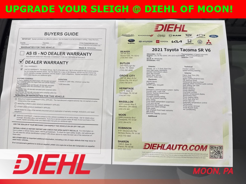 Find this Diversified Certified Tacoma today at Diehl of Moon Twp before someone else decides its their perfect weekend upgrade.