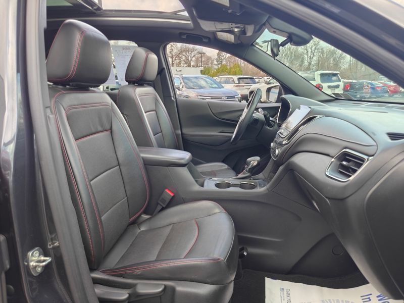 **ONE OWNER**, **CLEAN CARFAX**, **3MONTH-3,000 MILE WARRANTY INCLUDED**, **ALL WHEEL DRIVE**, **HEATED SEATS**, **ADAPTIVE CRUISE CONTRL**, **LANE KEEP ASSIST**, **BLIND SPOT DETECTION**, **FRONT CRASH DETECTION**, **BLUETOOTH**, **BACKUP CAMERA**, **ALLOY WHEELS**, ** REMOTE START**, **PANO SUNROOF**, **360 SURROUND CAMERA**, **POWER LIFTGATE**, **ANDROID AUTO**, **APPLE CARPLAY*, Equinox RS, AWD, Iron Gray Metallic, Jet Black Leather, 120-Volt Power Outlet, 19" Aluminum Wheels, 2 USB Data Ports, 2 USB Data Ports w/SD Card Reader, 8-Way Power Driver Seat Adjuster, Adaptive Cruise Control, Advanced Safety Package, Auto High-beam Headlights, Automatic temperature control, Bluetooth® For Phone, Bose Premium 7-Speaker Audio System Feature, Delay-off headlights, Driver Seatback Map Pocket, Front dual zone A/C, Fully automatic headlights, HD Surround Vision, Heated Driver & Front Passenger Seats, Heated Steering Wheel, Infotainment Package, Low tire pressure warning, Outside Heated Power Adjustable Mirrors, Perforated Leather-Appointed Seat Trim, Power driver seat, Power Liftgate, Power Sunroof, Preferred Equipment Group 1RS, Radio: Chevrolet Infotainment 3 Plus System w/Navi, Remote keyless entry, RS Leather Package, Steering wheel mounted audio controls, Tilt steering wheel.