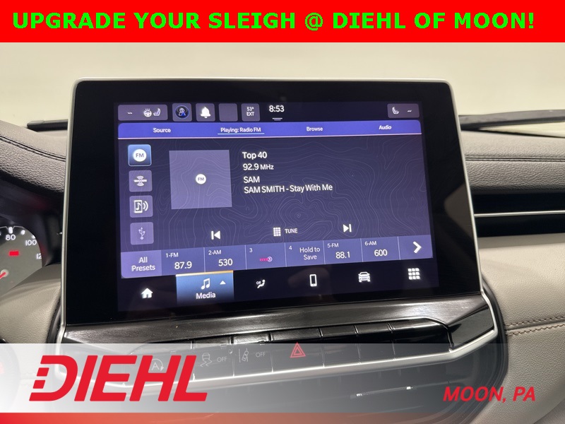 Once you're inside, the Compass Limited delivers a refined driving experience powered by a 2.4L I4 paired with a smooth 9 speed automatic transmission and automatic full time four wheel drive. The ride feels confident and composed, whether you're navigating Pittsburgh weather or cruising your daily route. Adaptive cruise control and lane keeping assist help take the edge off longer drives, while the backup camera and blind spot monitoring add extra peace of mind in tight spots.