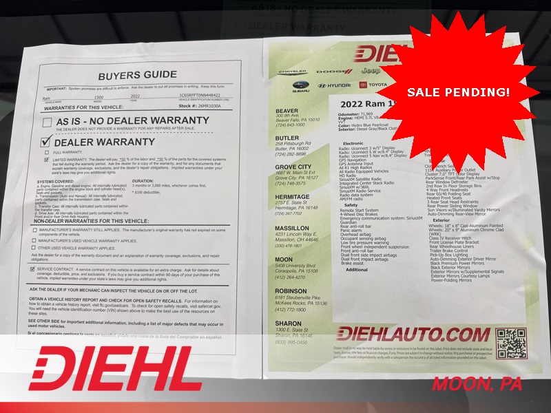 If you're looking for a truck that works hard, looks sharp, and refuses to apologize for being the most capable thing in the driveway, this Ram 1500 Big Horn is waiting at Diehl of Moon. Swing by and take it for a drive...just be warned, it has a tendency to win people over quickly.