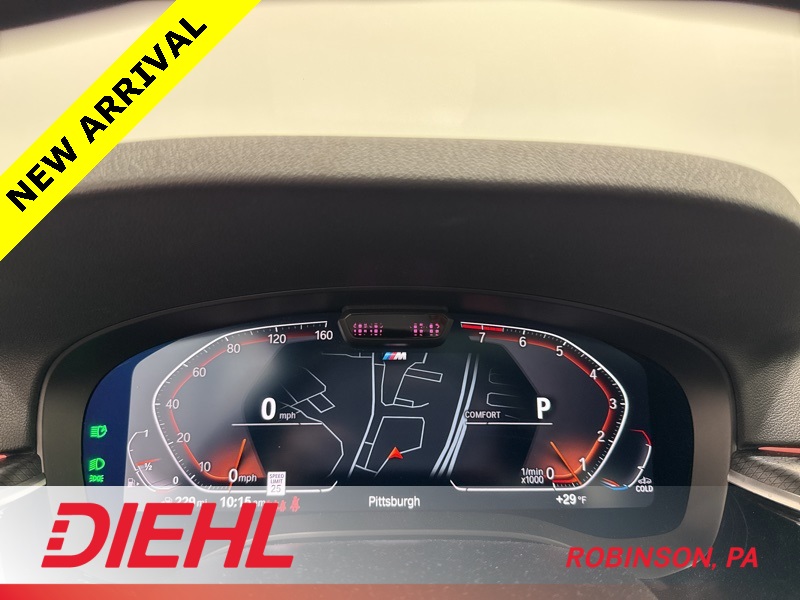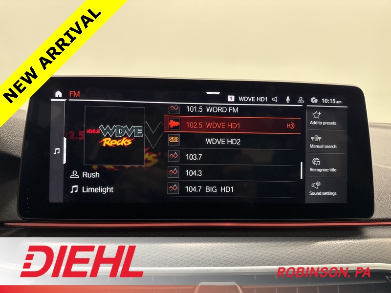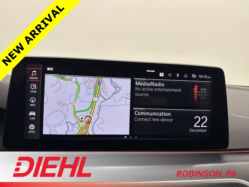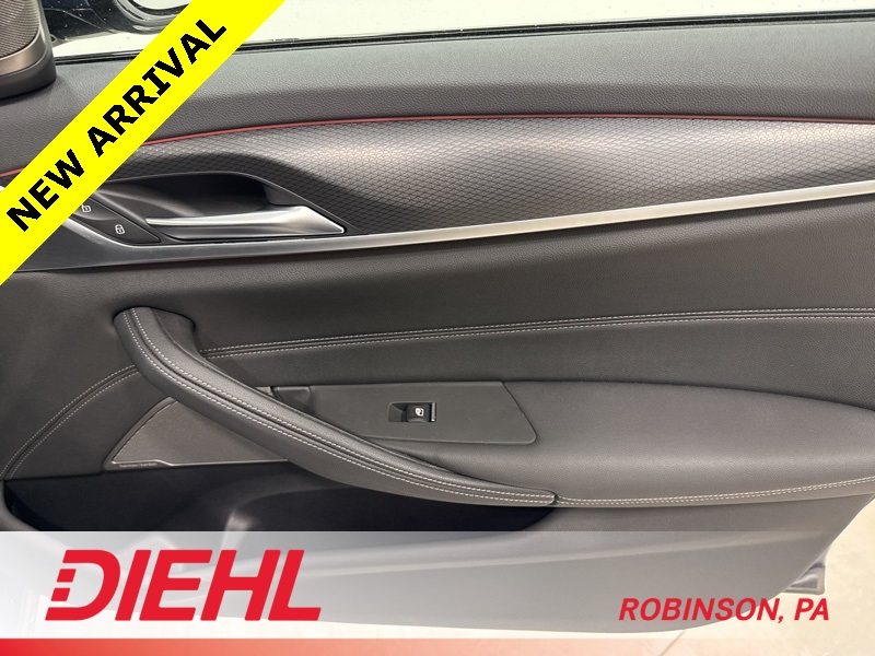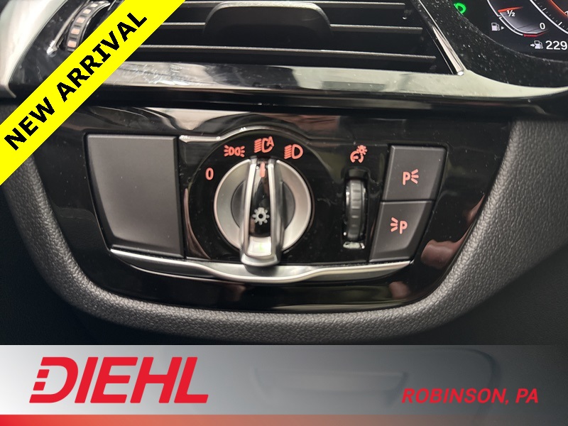 Inside, the cabin is clean, modern, and driver-focused, featuring BMW TeleServices, a digital/analog instrument display, driver information center, Hi-Fi sound system, 12 speakers, and streaming audio. Comfort and convenience are enhanced with power windows, cargo area lighting, rear seat cargo access, and multiple 12V power outlets, while wireless charging keeps devices powered without clutter.