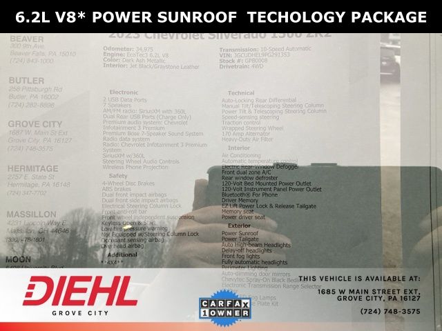 **4X4**, 10-Speed Automatic, 4WD, Jet Black/Graystone Leather, 10-Way Power Driver Seat w/Lumbar, 10-Way Power Passenger Seat Adjuster w/Lumbar, 12.3" Multicolor Reconfigurable Digital Display, 120-Volt Bed Mounted Power Outlet, 120-Volt Instrument Panel Power Outlet, 15" Diagonal Multicolor Head-Up Display, 170 Amp Alternator, 2 USB Data Ports, 2nd Row Heated Outboard Seats, 4-Wheel Disc Brakes, ABS brakes, Adaptive Cruise Control, All-Weather Floor Liner (LPO), Auto-Dimming Inside Rear-View Mirror, Auto-Locking Rear Differential, Bed View Camera, Bluetooth® For Phone, Chevrolet Connected Access Capable, Chevytec Spray-On Black Bedliner, Color-Keyed Carpeting Floor Covering, Compass, Deep-Tinted Glass, Driver Memory, Dual Exhaust, Dual front impact airbags, Dual front side impact airbags, Dual Rear USB Ports (Charge Only), Electric Rear-Window Defogger, Electrical Steering Column Lock, Electronic Cruise Control, EZ Lift Power Lock & Release Tailgate, Floor Mounted Center Console, Front anti-roll bar, Front LED Fog Lamps, Front Rainsensing Wipers, Front wheel independent suspension, HD Surround Vision, Heated Driver & Front Outboard Passenger Seats, Heated Steering Wheel, Heavy-Duty Air Filter, High Gloss Black Mirror Caps, Hill Descent Control, Hitch Guidance, Hitch Guidance w/Hitch View, Integrated Trailer Brake Controller, Keyless Open & Start, LED Cargo Area Lighting, Low tire pressure warning, Manual Tilt/Telescoping Steering Column, Not Equipped w/Steering Column Lock, Occupant sensing airbag, OnStar & Chevrolet Connected Services Capable, Outside Heated Power-Adjustable Mirrors, Overhead airbag, Performance Red Recovery Hooks, Perimeter Lighting, Power Front Passenger Windows w/Express Up/Down, Power Front Windows w/Driver Express Up/Down, Power Rear Windows w/Express Down, Power Sliding Rear Window w/Rear Defogger, Power Sunroof, Power Tilt & Telescoping Steering Column, Preferred Equipment Group 3LT, Rear Camera Mirror, Rear Cross Traffic Alert-Braking, Rear Park Assist, Rear Pedestrian Alert, Rear Wheelhouse Liners, Remote Vehicle Starter System, Safety Alert Seat, SiriusXM w/360L, Standard Tailgate, Steering Wheel Audio Controls, Technology Package, Theft Deterrent System (Unauthorized Entry), Trailer Camera Provisions, Trailer Side Blind Zone Alert, Trailering App, Trailering Package, Universal Home Remote, Up-Level Rear Seat w/Storage Package, Ventilated Driver & Front Passenger Seats, Wi-Fi Hot Spot Capable, Wireless Charging, Wireless Phone Projection, Wrapped Steering Wheel. CARFAX One-Owner. Clean CARFAX. Priced below KBB Fair Purchase Price!