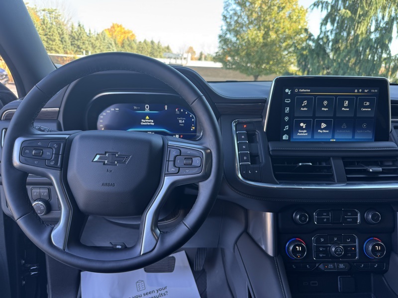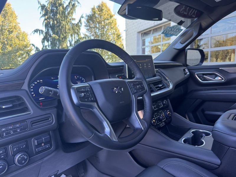 **4X4**, **POWER SUNROOF/MOONROOF**, **HEATED LEATHER SEATS**, **3RD ROW SEATING**, **AUTOMATIC START**, *BLIND SPOT DETECTION*, *BACK UP SENSORS*, *APPLE CARPLAY*, **HEATED STEERING WHEEL**, **LUXURY PACKAGE**, Tahoe Z71, 4WD, Black Leather, 1st & 2nd Row Color-Keyed Carpeted Floor Mats, 2-Speed Active Electronic AutoTrac Transfer Case, 2nd Row Pwr Release 60/40 Split-Folding Bench Seat, 3rd Row 60/40 Power-Folding Split-Bench Seat, Advanced Trailering Package, Auto-Dimming Inside Rear-View Mirror, Black Tubular Assist Steps, Bose 9-Speaker Stereo Audio System Feature, Bright Front & Rear Door Sill Plates, Color-Keyed Carpeting Floor Covering, Driver & Front Outboard Passenger Airbags, Driver Alert Package, Enhanced Driver Information Center, Extra Capacity Cooling System, Floor Console w/Storage Area, Front High-Approach Angle Fascia, Hands-Free Rear Power Programmable Liftgate, HD Surround Vision, Heated 2nd Row Outboard Seats, Heated Steering Wheel, Hill Descent Control, Hitch Guidance w/Hitch View, Infotainment Display, Integrated Trailer Brake Controller, Lane Change Alert w/Side Blind Zone Alert, LED Daytime Running Lamps, License Plate Front Mounting Package, Luxury Package, Max Trailering Package, Memory Settings, Memory Settings for Driver, Outside Heated Power-Adjustable Mirrors, Power Tilt & Telescopic Steering Column, Preferred Equipment Group 2Z7, Rear Cross Traffic Alert, Rear Pedestrian Alert, Red Horizontal-Mounted Recovery Hooks, Remote Start, SiriusXM Radio w/360L, Smart Trailer Integration Indicator, Universal Home Remote, Wireless Charging, Wrapped Steering Wheel.