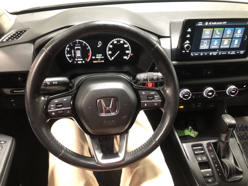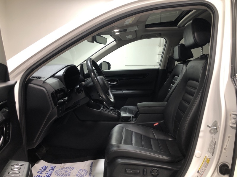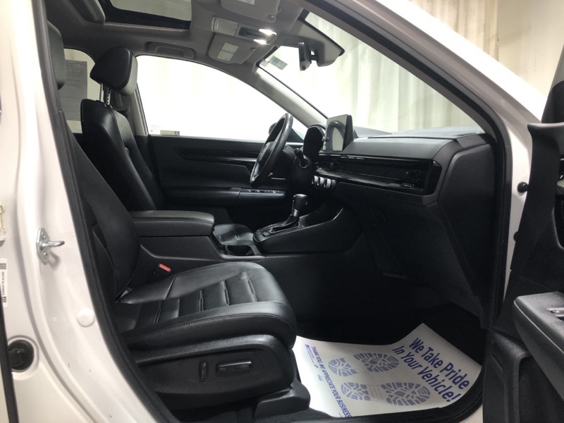 Clean CARFAX. CARFAX One-Owner. Platinum White Pearl 2023 Honda CR-V EX-L AWD CVT 1.5L I4 DOHC 16V 27/32 City/Highway MPG