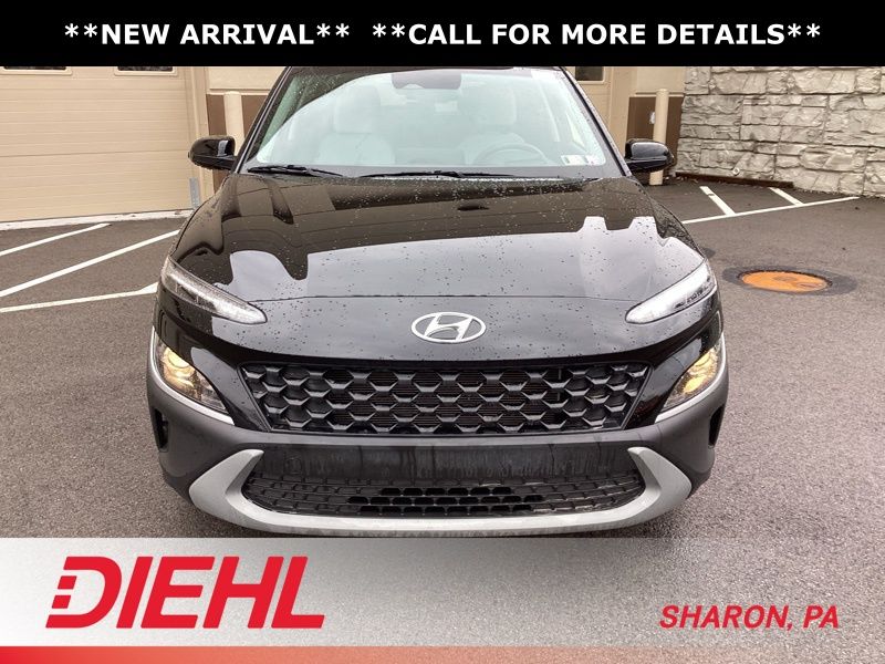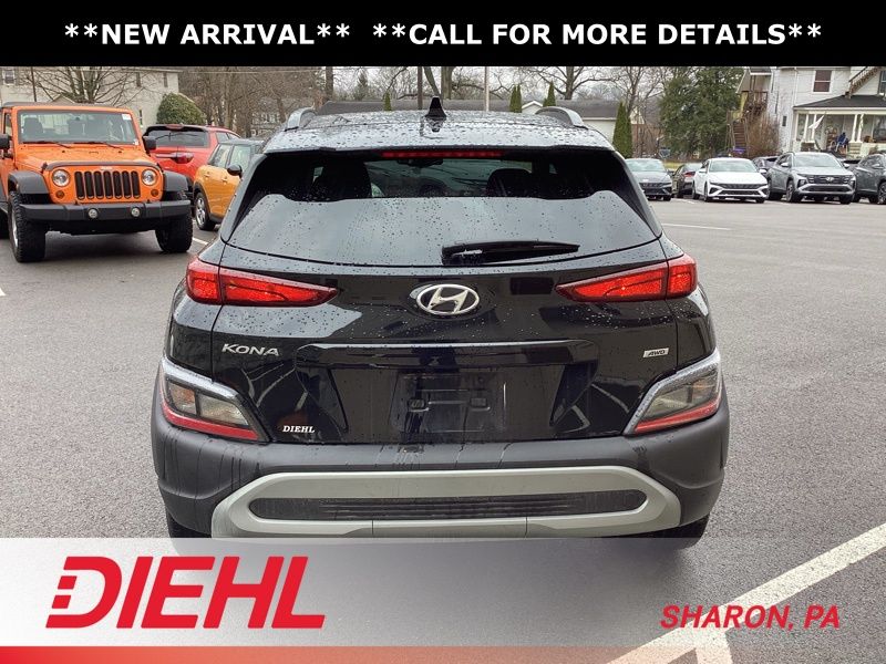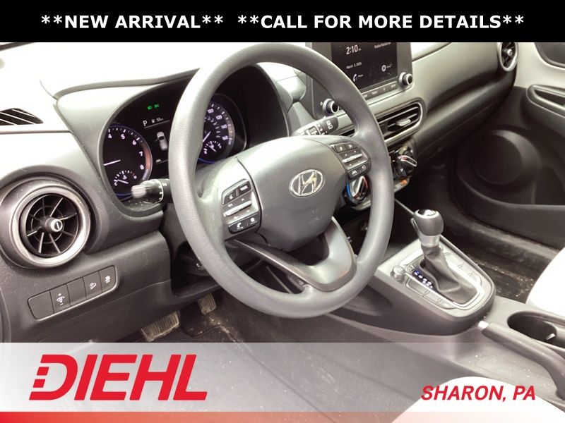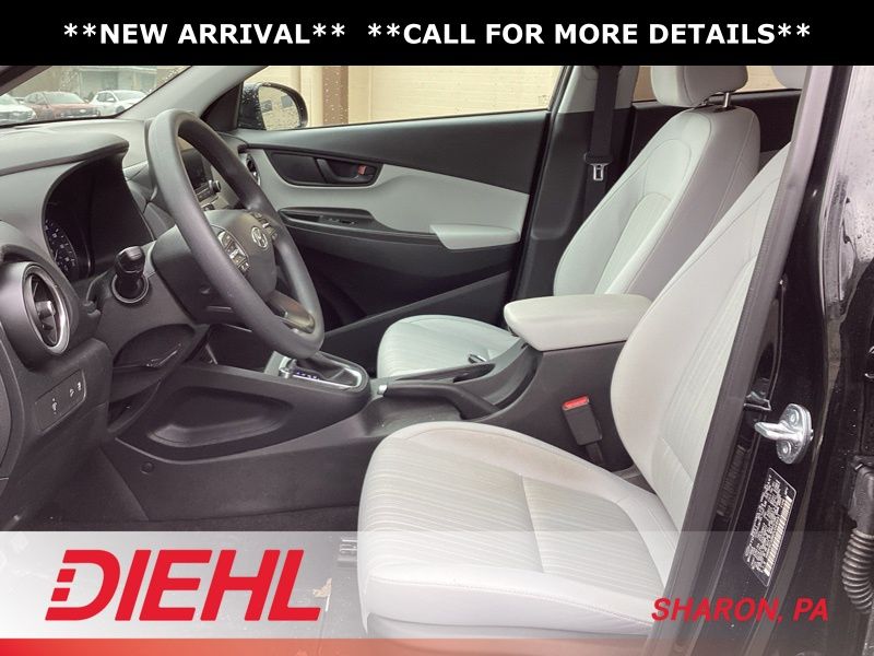 17" x 7.0J Alloy Wheels, 4-Wheel Disc Brakes, 5.715 Axle Ratio, 6 Speakers, ABS brakes, Air Conditioning, Alloy wheels, AM/FM radio: SiriusXM, Apple CarPlay & Android Auto, Brake assist, Bumpers: body-color, Cargo Blocks, Cargo Net, Cargo Package, Cargo Tray, Carpeted Floor Mats, Cloth Seat Trim, Delay-off headlights, Driver door bin, Driver vanity mirror, Dual front impact airbags, Dual front side impact airbags, Electronic Stability Control, Emergency communication system: Blue Link Connected Car Service (3-year complimentary subscription), Exterior Parking Camera Rear, First Aid Kit, Four wheel independent suspension, Front anti-roll bar, Front Bucket Seats, Front Center Armrest, Front reading lights, Fully automatic headlights, Heated door mirrors, Illuminated entry, Low tire pressure warning, Occupant sensing airbag, Option Group 01, Outside temperature display, Overhead airbag, Overhead console, Panic alarm, Passenger door bin, Passenger vanity mirror, Power door mirrors, Power driver seat, Power steering, Power windows, Radio: AM/FM/HD/SiriusXM Audio System, Rear anti-roll bar, Rear seat center armrest, Rear window defroster, Rear window wiper, Remote keyless entry, Security system, Speed control, Speed-sensing steering, Split folding rear seat, Spoiler, Steering wheel mounted audio controls, Tachometer, Telescoping steering wheel, Tilt steering wheel, Traction control, Trip computer, Turn signal indicator mirrors, Variably intermittent wipers, Wheel Locks. Certified. Abyss Black Pearl 2023 Hyundai Kona SEL AWD CVT 2.0L I4 DOHC Dual CVVT