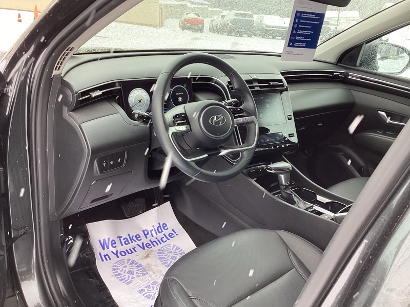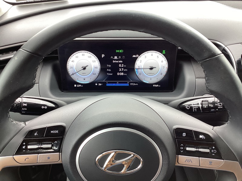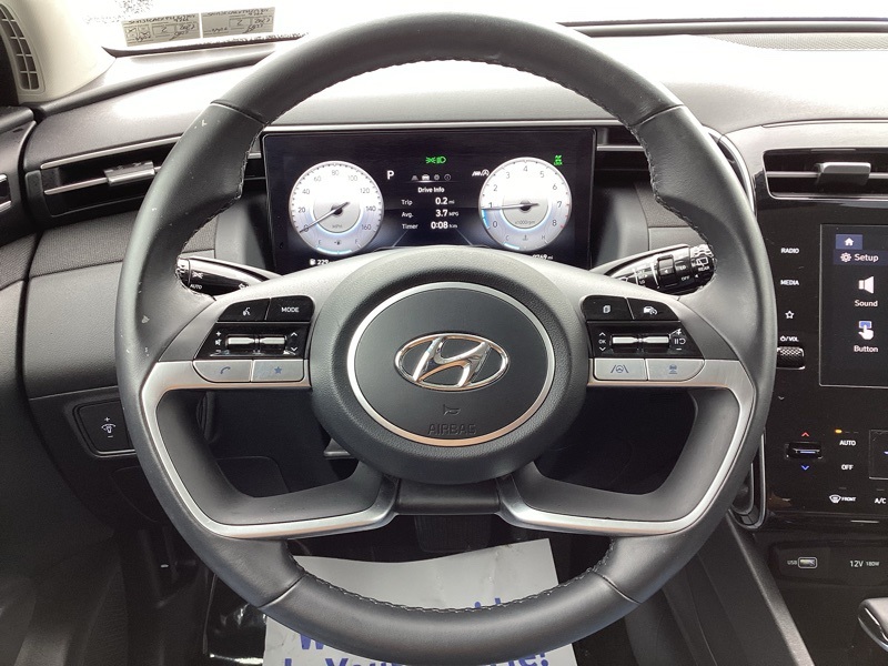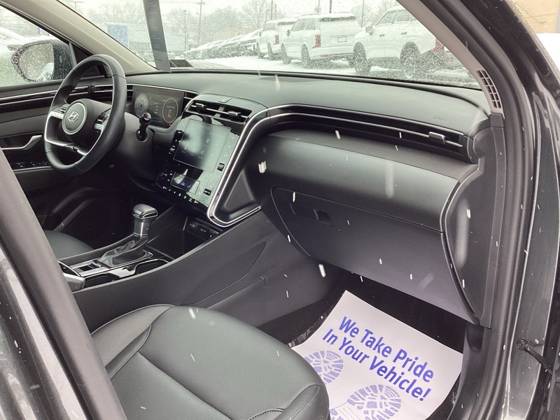 AWD, 10.25" Digital Instrument Cluster, 3.648 Axle Ratio, 4-Wheel Disc Brakes, 6 Speakers, ABS brakes, Air Conditioning, Alloy wheels, AM/FM radio: SiriusXM, Apple CarPlay & Android Auto, Auto High-beam Headlights, Auto-Dimming Interior Mirror w/Homelink, Brake assist, Bumpers: body-color, Cargo Cover, Cargo Net, Cargo Tray, Carpeted Floor Mats, Convenience Package, Delay-off headlights, Driver door bin, Driver vanity mirror, Dual Automatic Temperature Control, Dual front impact airbags, Dual front side impact airbags, Electronic Stability Control, Emergency communication system: Blue Link Connected Car Service (3-year complimentary subscription), First Aid Kit, Four wheel independent suspension, Front and Rear Mudguards, Front anti-roll bar, Front Bucket Seats, Front Center Armrest, Front reading lights, Fully automatic headlights, H-Tex Seat Trim, Heated door mirrors, Heated Front Bucket Seats, Heated front seats, Illuminated entry, Leather-Wrapped Shift Knob, Leather-Wrapped Steering Wheel, LED Interior Lights (Room, Map), Low tire pressure warning, Occupant sensing airbag, Option Group 02, Outside temperature display, Overhead airbag, Overhead console, Panic alarm, Passenger door bin, Passenger vanity mirror, Power door mirrors, Power driver seat, Power Liftgate, Power steering, Power Sunroof, Power windows, Radio data system, Radio: AM/FM/HD/SiriusXM Audio System, Rear anti-roll bar, Rear seat center armrest, Rear window defroster, Rear window wiper, Remote keyless entry, Roof rack: rails only, Security system, Speed control, Split folding rear seat, Spoiler, Stain & Odor Resistant Cloth Seat Trim, Steering wheel mounted audio controls, Tachometer, Telescoping steering wheel, Tilt steering wheel, Traction control, Trip computer, Turn signal indicator mirrors, Ultrasonic Rear Occupant Alert, Variably intermittent wipers, Wheels: 19" x 7.5J" Machine-Face Finish Alloy. Certified. Portofino Gray 2023 Hyundai Tucson SEL AWD 8-Speed Automatic with SHIFTRONIC 2.5L I4 DGI DOHC 16V LEV3-ULEV70 187hp