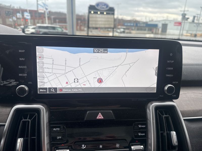 **BACK UP SENSOR**, *KEYLESS START*, **3RD ROW SEATING**, *ALL WHEEL DRIVE*, **BACK UP CAMERA**, **ANDROID AUTO**, **APPLE CAR PLAY**, **HEATED SEATS**, **LANE KEEP ASSIST**, **LEATHER**, **MOONROOF**, **NAVIGATION**, **ONE OWNER**, **POWER DRIVERS SEAT**, **POWER LIFTGATE**, AWD. Aruba Green 2023 Kia Sorento X-Line EX AWD 8-Speed DCT 2.5L I4 DGI Turbocharged DOHC 16V LEV3-ULEV70 281hp