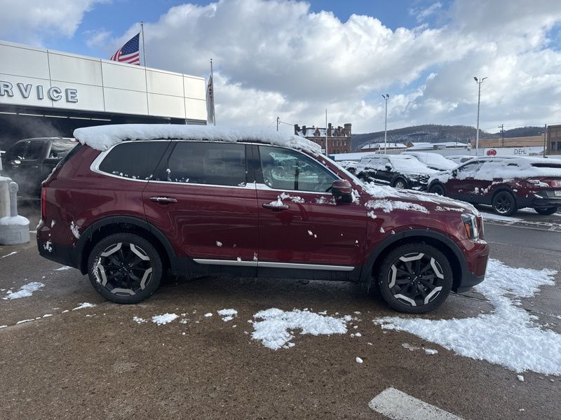 **BACK UP SENSOR**, *KEYLESS START*, **3RD ROW SEATING**, *ALL WHEEL DRIVE*, **BACK UP CAMERA**, **ANDROID AUTO**, **APPLE CAR PLAY**, **HEATED SEATS**, **LANE KEEP ASSIST**, **LEATHER**, **NAVIGATION**, **POWER DRIVERS SEAT**, **POWER LIFTGATE**. Dawning Red 2023 Kia Telluride S AWD 8-Speed Automatic 3.8L V6 DGI DOHC Dual CVVT