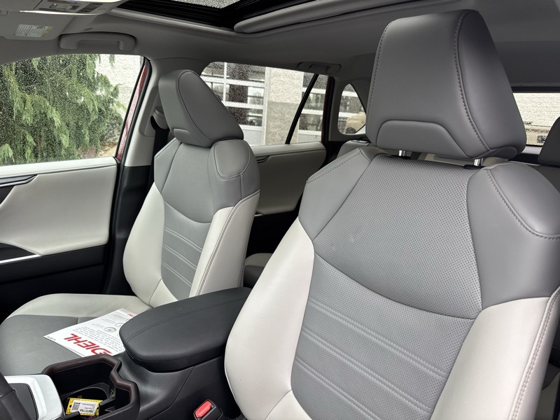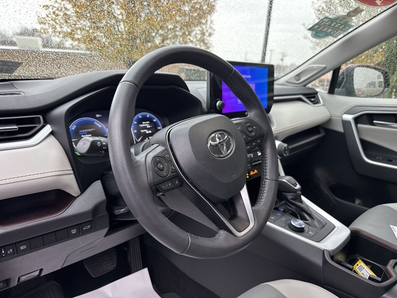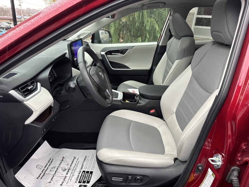 Ruby Flare Pearl 2023 Toyota RAV4 Hybrid Limited 4D Sport Utility AWD 2.5L 4-Cylinder eCVT 2.5L 4-Cylinder, 11 Speakers, 4-Wheel Disc Brakes, ABS brakes, Air Conditioning, Alloy wheels, AM/FM radio: SiriusXM, Auto High-beam Headlights, Auto-dimming Rear-View mirror, Automatic temperature control, Axle Ratio: TBD, Brake assist, Bumpers: body-color, Delay-off headlights, Driver door bin, Driver vanity mirror, Dual front impact airbags, Dual front side impact airbags, Electronic Stability Control, Emergency communication system: Safety Connect (1-year trial), Four wheel independent suspension, Front anti-roll bar, Front Bucket Seats, Front Center Armrest, Front dual zone A/C, Front fog lights, Front reading lights, Fully automatic headlights, Garage door transmitter: HomeLink, Heated door mirrors, Heated front seats, Heated/Ventilated Front Bucket Seats, Illuminated entry, JBL Audio System, Knee airbag, Lane Departure Warning System, Leather Shift Knob, Low tire pressure warning, Memory seat, Occupant sensing airbag, Outside temperature display, Overhead airbag, Overhead console, Panic alarm, Passenger door bin, Passenger vanity mirror, Power door mirrors, Power driver seat, Power Liftgate, Power moonroof, Power steering, Power windows, Radio data system, Rear anti-roll bar, Rear seat center armrest, Rear window defroster, Rear window wiper, Remote keyless entry, Roof Rack Cross Bars (TMS), Security system, SofTex Seat Trim, Speed control, Speed-sensing steering, Split folding rear seat, Spoiler, Steering wheel mounted audio controls, Telescoping steering wheel, Tilt steering wheel, Traction control, Trip computer, Turn signal indicator mirrors, Variably intermittent wipers, Ventilated front seats, and Wheels: 18" x 7.0J Silver Aluminum Alloy. Odometer is 5400 miles below market average! 41/38 City/Highway MPG