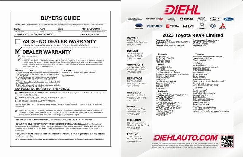 Ice Cap 2023 Toyota RAV4 Limited 4D Sport Utility AWD 2.5L 4-Cylinder DOHC Dual VVT-i 8-Speed Automatic 25/33 City/Highway MPG