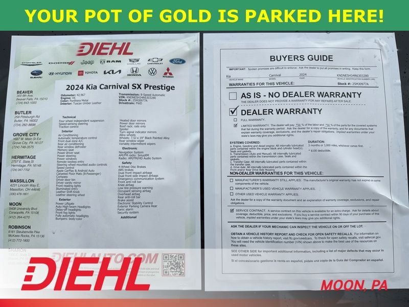 This 2024 Kia Carnival MPV SX Prestige is ready and waiting at Diehl of Moon Twp. Come see why this one checks every box before someone else beats you to it.