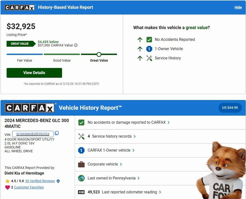 Clean CARFAX. CARFAX One-Owner. 2024 Mercedes-Benz GLC 300 4MATIC® GLC 300 24/32 City/Highway MPG Black
