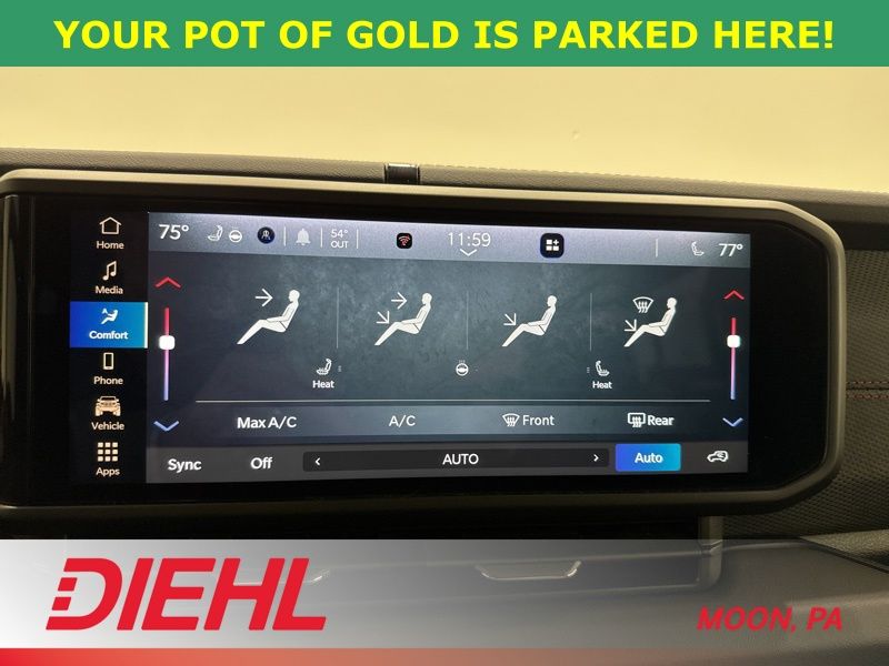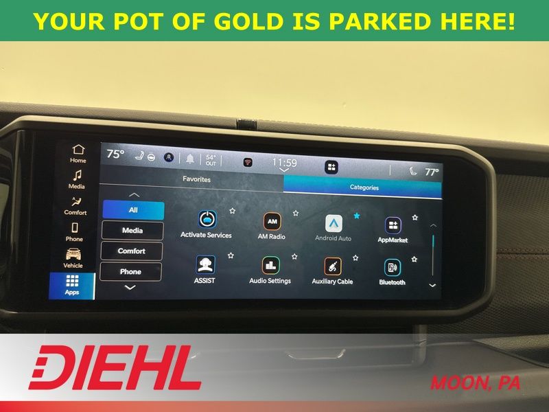 Inside, the cabin balances rugged personality with everyday comfort. Heated front seats and a heated steering wheel from the Convenience Group make cold mornings far more civilized, while keyless entry and push button start make hopping in and heading out effortless. The touchscreen system keeps you connected with Apple CarPlay, Android Auto, Bluetooth, and an available WiFi hotspot so your playlists, maps, and podcasts stay right where you want them. Adaptive cruise control and a backup camera add extra confidence whether you are navigating highway traffic or tight parking lots.